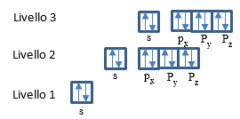 - Principio di Pauli: in ogni orbitale ci possono essere al massimo 2 elettroni, con spin opposto (in un atomo infatti non possono esistere due elettroni che presentano gli stessi quattro numeri quantici).