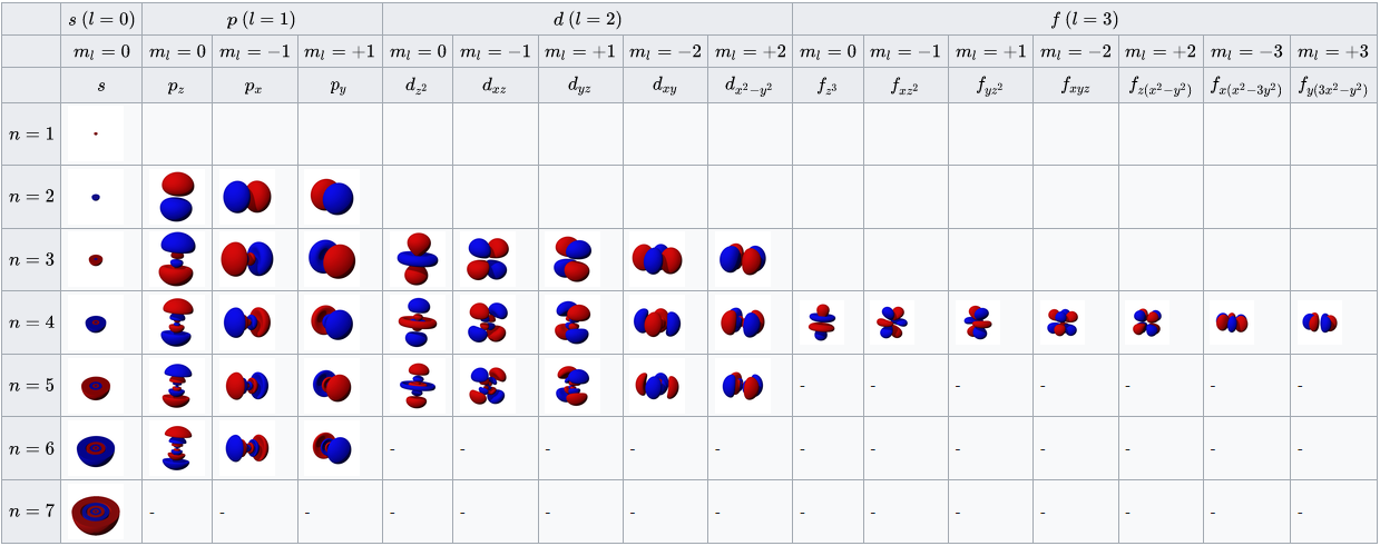 In un atomo non eccitato esistono 4 tipi di orbitali: l = 0 chiamato s (sharp), l = 1 chiamato p (principal), l = 3 chiamato d (diffuse), l = 4 chiamato f (fundamental)