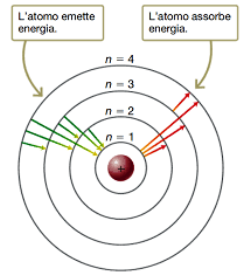 - quando un elettrone cede un fotone, l’energia equivalente alla differenza delle 2 orbite, salta all’orbita inferiore